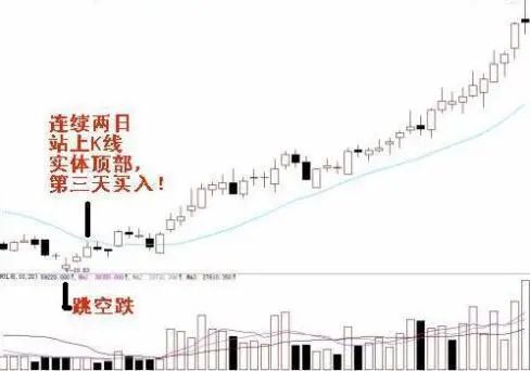 买进条件:连续两日收盘价站上跳空跌K线实体顶部
