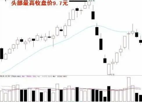 股价大跌,形成头部,计算止损价9.70元×0.9=8.73元,止损出局,成功避开后面更大跌幅。