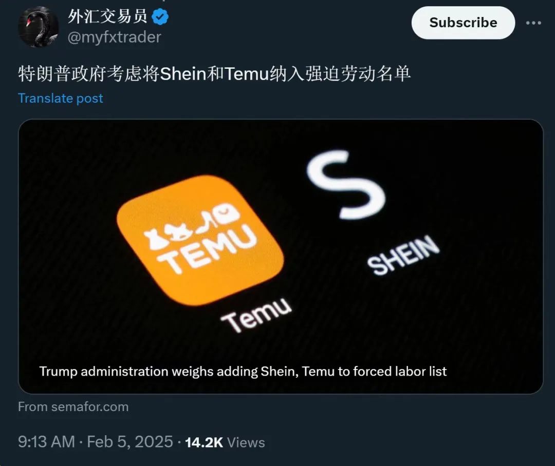另外,还有更加麻烦的事是:有消息说,特朗普正在讨论是否将 SHEIN和Temu,加入国土安全部的强迫劳动名单。