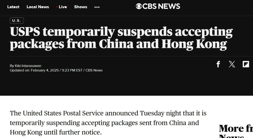昨晚,美国邮政服务(USPS)宣布,从2月4日起暂停接收从中国内地和中国香港寄出的包裹,直至另行通知。信件和平件不包括在暂停接收的范围内。