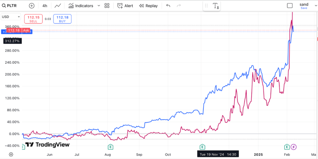 由于与 Palantir 的领域非常相似,这两只股票实际上具有很强的相关性。