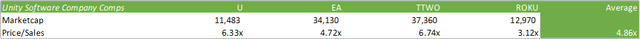 Unity 股价在 2024 年第四季度财报发布后上涨,在下一个交易日达到峰值,涨幅接近 40%。估值为过去 12 个月的 6.33 倍,与去年 U 股的交易区间以及其技术同行相比有显著溢价。