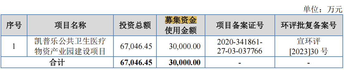 招股书显示,此次IPO,爱舍伦计划募集资金3亿元,将全部用于凯普乐公共卫生医疗物资产业园建设项目。