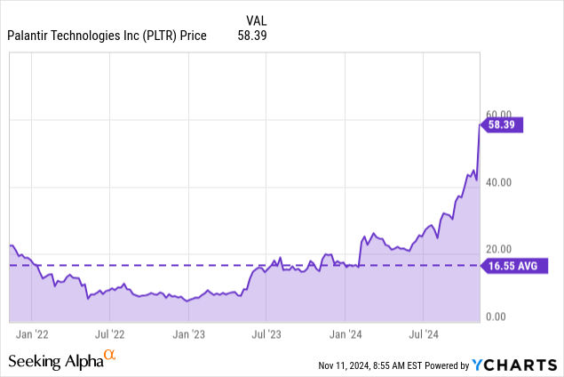 在Palantir(NYSE:PLTR)公布2024年第三季度財報後,分析師採取了反向立場,並啓動了賣出評級,公允價值估計為38.50美元。因為即使考慮到其人工智能計劃的巨大勢頭,其當前每股60美元的市場估值也過於高估。