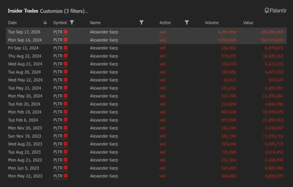 Palantir的首席執行官在過去三個月內出售了價值超過12億美元的股票,約佔其股份的14%。