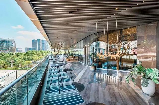 層層疊疊的綠植、螺旋上升的鋼結構、如同丘陵般自由延展的邊界……綠之丘的建築造型獨特,遠遠望去,透露着濃濃工業風。頂樓有一段U型步道,提供270°觀景平臺,當漫步其間,有一種騰空臨江的視覺效果,可以發現意想不到的美景。