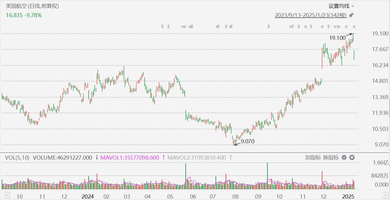 格隆匯1月23日|美國航空(AAL.US)盤中一度跌超10%至16.73美元。