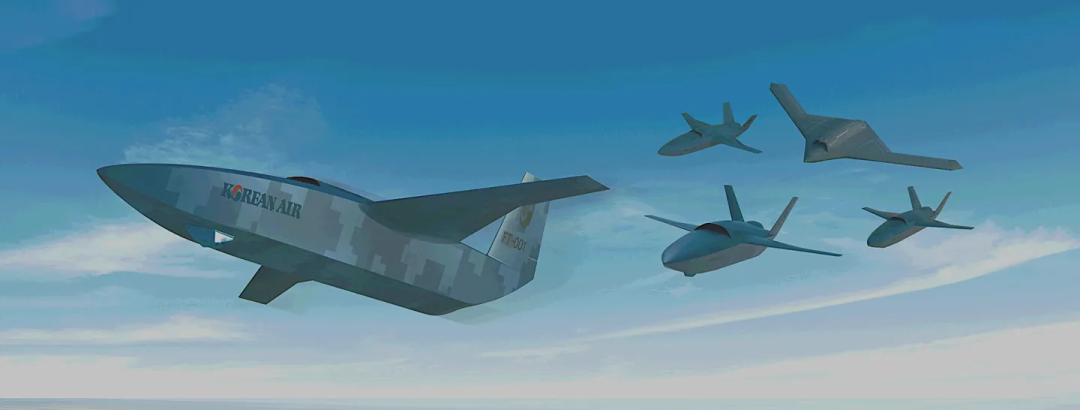 圖:大韓航空公司提出的「隱形無人機中隊」渲染圖,其中包括一架飛翼型無人作戰飛行器(UCAV)和多架忠誠僚機型無人機,其中最接近的一架看起來與LOWUS非常相似。
