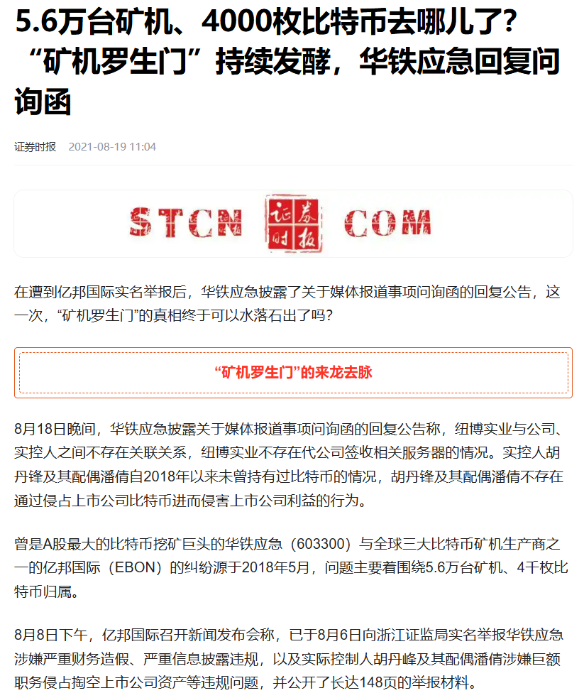 胡老板的子公司华铁恒安计划花上4.03亿向亿邦国际(EBON.US)子公司买8万台矿机。