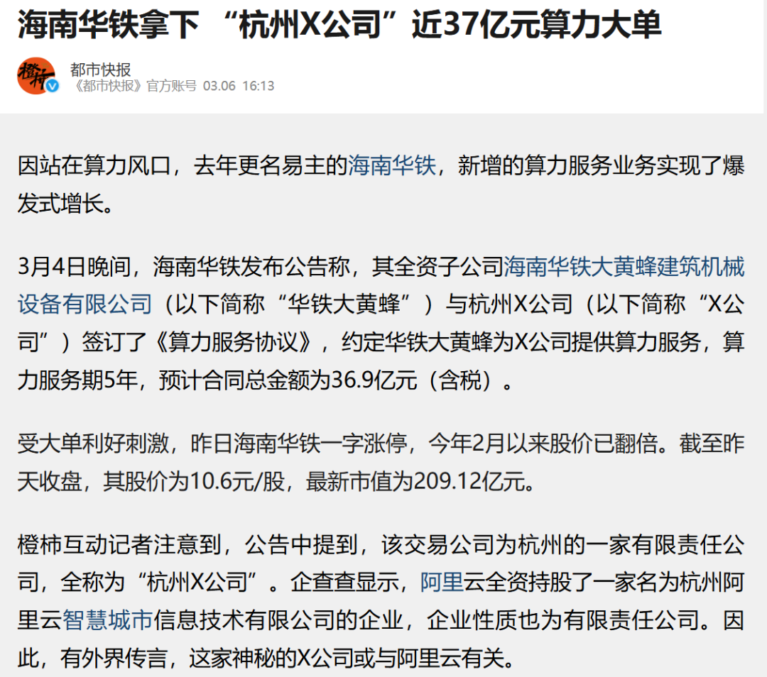 关于算力,2023年年报里只是提到了一嘴。一年之后,整个公司就成了一只算力大牛股,一举拿下近37亿的订单。
