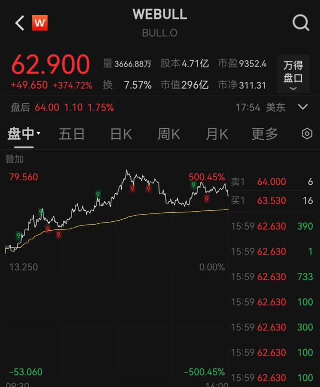 异动个股方面,微牛(WEBULL)涨374.72%,盘中多次熔断,最新总市值296亿美元。资料显示,微牛公司属于数字投资平台,主要在美国开展业务。