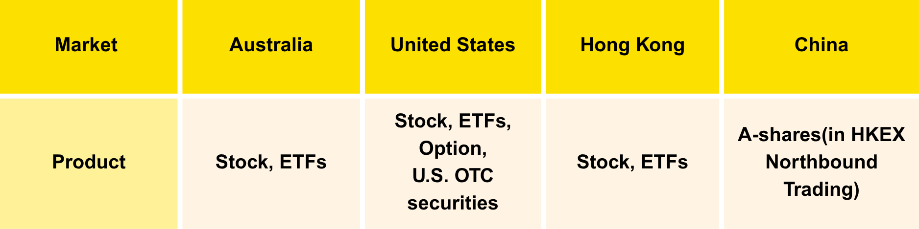 Products currently available for trading via Tiger Trade APP