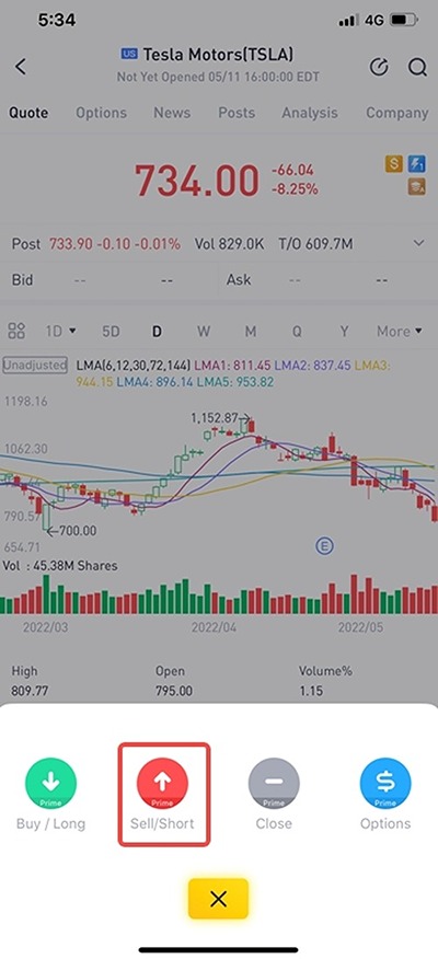 To short sell using the Tiger Trade app, search for the company stock > click on Portfolio and select the "Sell / Short" button when you are not holding any shares that you want to short.