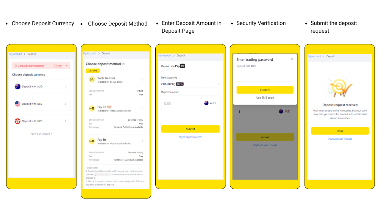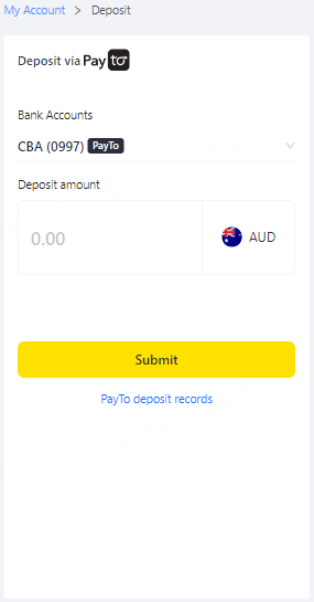 ^The PayTo service currently does not support all banks in Australia, and individual banks impose different limits on PayTo deposits. Please follow the prompts to operate.