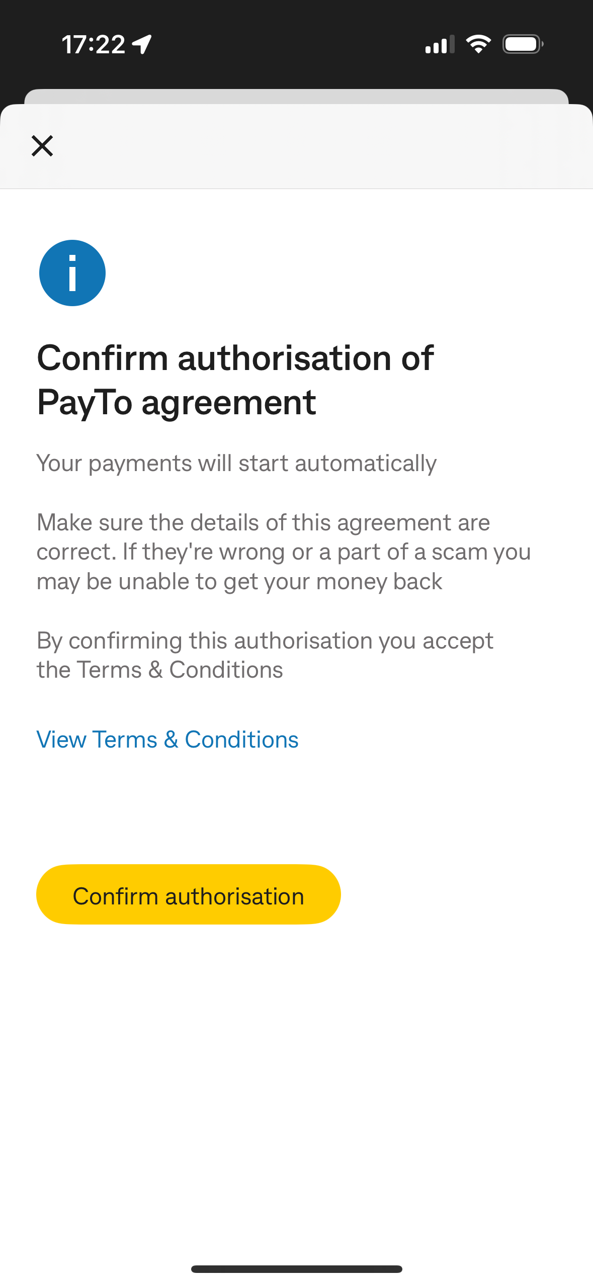 Agreement requests expired: If you do not authorise and approve the PayTo agreement within 15 minutes in your banking app, the authorisation request will lapse, and you will need to try again.