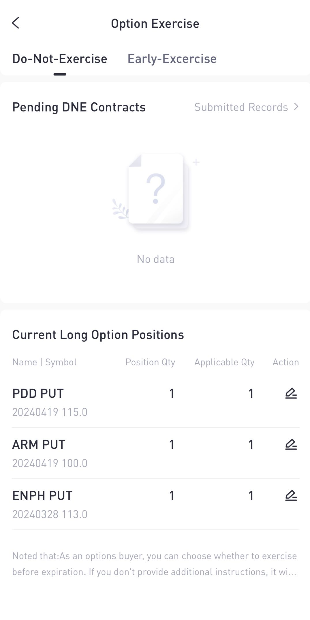 For short-term traders who are more interested in profiting from market volatility rather than holding stocks, exercising options that are slightly in-the-money might not be worth the additional capital required. Moreover, stock price fluctuations could potentially lead to losses by the next trading day. Opting to Do-not-Exercise can provide greater flexibility for your capital. It also avoids forced liquidation due to an insufficient margin and saves on potential additional trading costs.