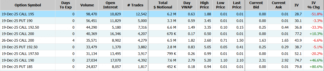 上周五,甲骨文涨超6%,期权合约成交85.89万张,较90日均量放大2.4倍。12月19日到期的195美元的行权看涨期权交易量特别高,共有98.470份合约交易。