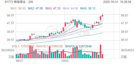 10月31日,“锂电双雄”继续走强, 赣锋锂业 、 天齐锂业 均涨超5%,昨日分别涨15%及9%。