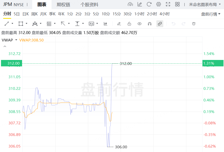 摩根大通预计全年净利息收入约为958亿美元,此前预计955亿美元。