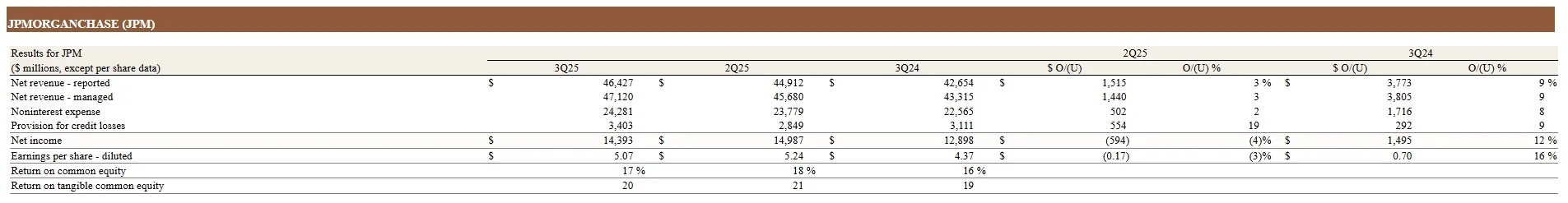 10月14日,摩根大通发布了2025年第三季度财报,财报显示:公司Q3经调整后营收471.2亿美元,超过市场预期的454.8亿美元。