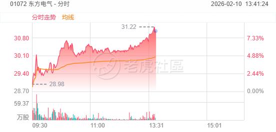2月10日,电力设备股午后走强,东方电气涨超8%,哈尔滨电气涨超4%,上海电气涨超2%,亿华通、福莱特玻璃等跟涨