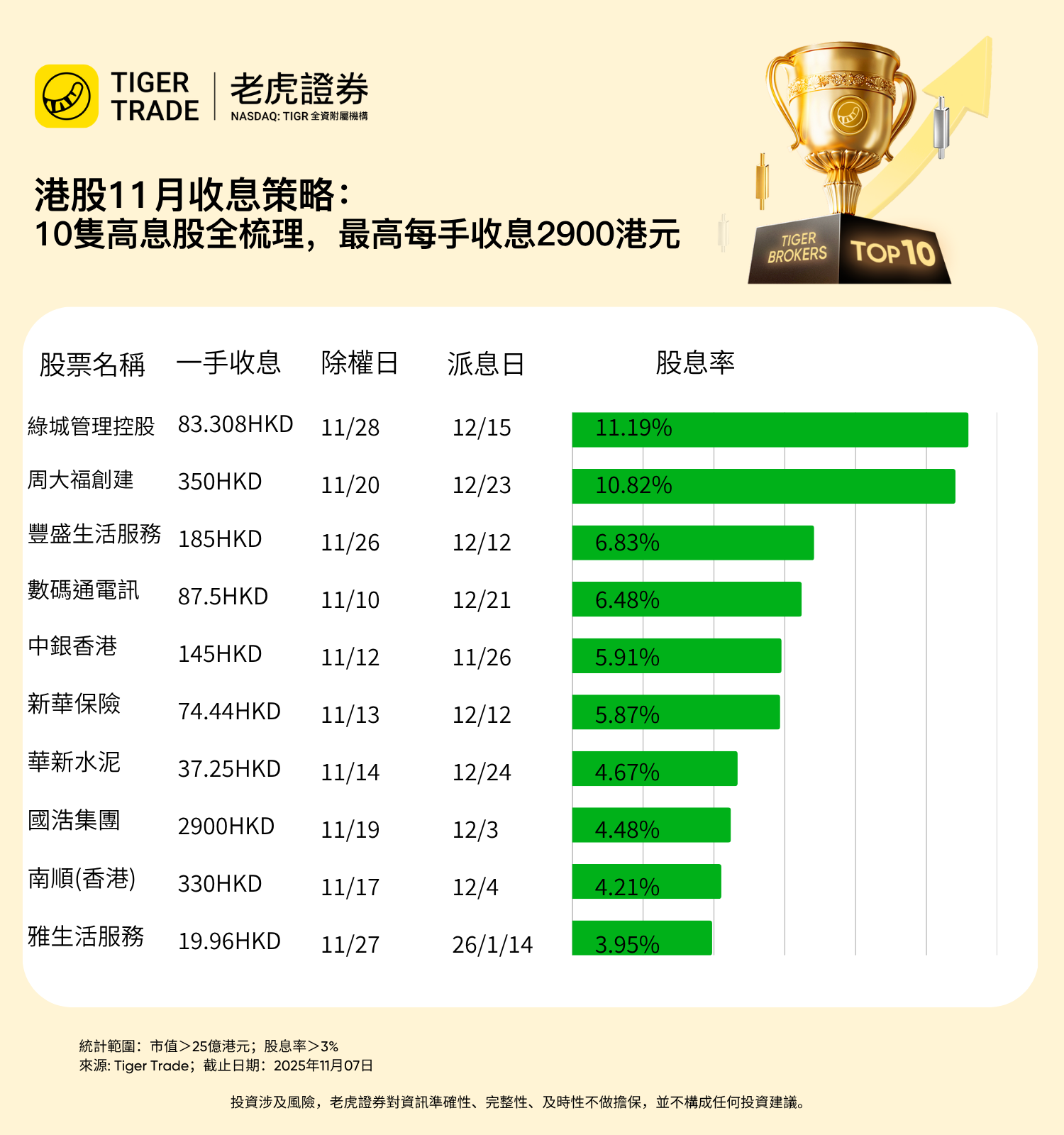港股11月收息策略:10只高息股全梳理,最高每手收息2900港元