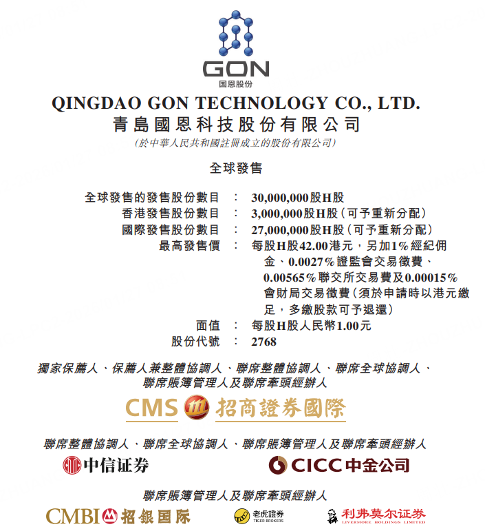 1月27日,国恩科技发布公告,于1月27日至1月30日招股,公司拟全球发售3000万股,每股发售价34-42港元,每手200股,入场费8484.71港元,预计将于2月4日开始在港交所挂牌交易。