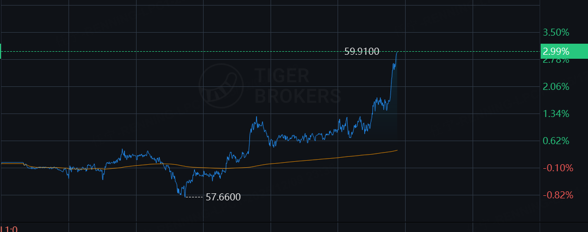 黄金白银股集体上涨, 白银ETF-iShares 涨超3%,黄金资源 涨超8%, 泛美白银 涨超7%, First Majestic Silver Corporation 涨超6%, Silvercorp Metal 涨近5%,哈莫尼黄金、美国黄金公司涨3.7%。