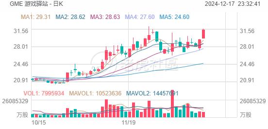 周二,游戏驿站涨逾6%。近期,游戏驿站公布第三季度业绩,销售额同比减少20%至8.6亿美元,低于市场预期的8.88亿美元;录得盈利1740万美元,而去年同期亏损310万美元;调整后每股收益6美分,高于市场预计的每股亏损3美分。