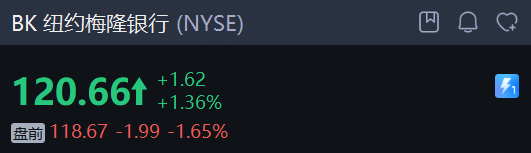 纽约梅隆银行 跌1.65%。超纽约梅隆银行四季度每股收益为2.08美元,四季度营收为51.79亿美元。