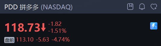部分中概股盘前走低。拼多多跌近5%,昨日暴涨21%的 金山云 跌近4%,百度 跌超3%、小鹏汽车 跌超2%,阿里巴巴跌超1%。