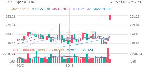 财报绩优股普涨, Expedia 大涨15%, 温蒂汉堡 涨超12%, Affirm Holdings, Inc. 涨9%。