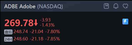 Adobe 夜盘大跌近8%。第一财季季营收超预期,创历史纪录。但第二财季指引未显著超出预期,任期最久CEO将卸任。