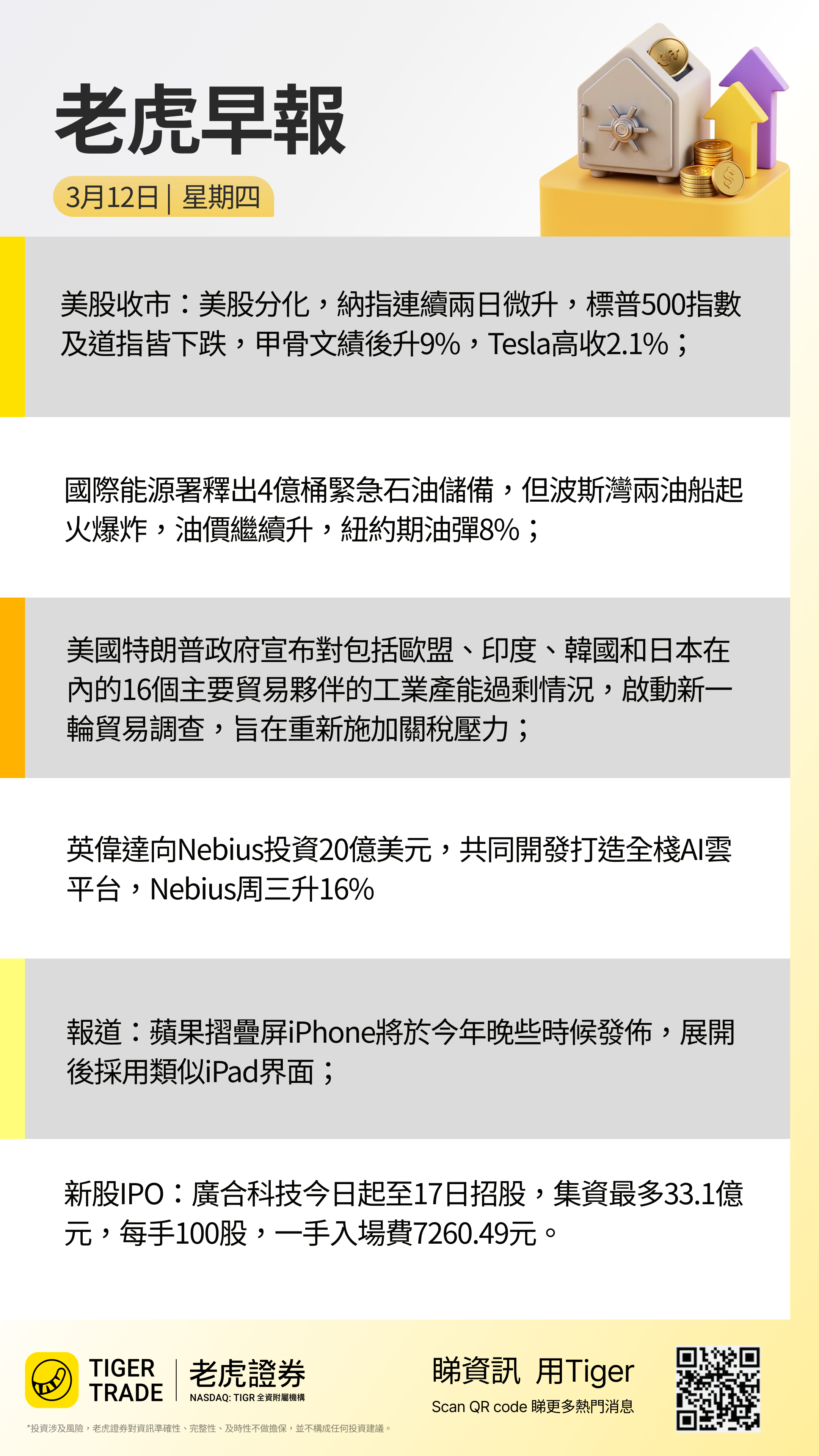 业绩报告:理想汽车、极光、美国达乐公司、亿航智能盘前公布业绩;Adobe、Ulta美容盘后公布业绩。