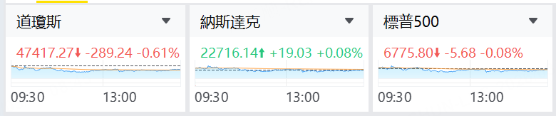 美股收盘:三大指数整体高开低走,涨跌不一,道指跌0.61%,标普500指数微跌,纳指微涨;
