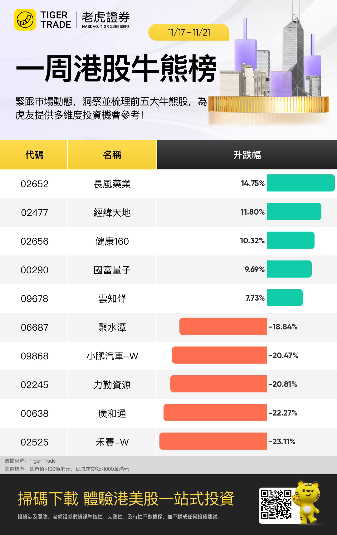 总结全周(11月17日-11月21日) 本周港股三大指数集体下挫。截至收盘,恒生指数累计下跌5.09%,报25220.02点;恒生科技指数累计下跌7.18%,报5395.49点;国企指数累计下跌5.09%,报8919.78点;