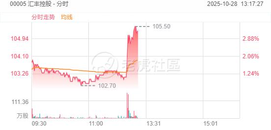 10月28日,汇丰控股午后直线拉升,涨超3%!该公司第三季度收入为177.88亿美元,同比增长5%。