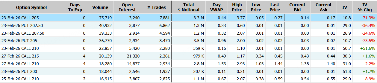 亚马逊期权合约成交84.74万张,2月23日到期的205美元的行权看涨期权交易量特别高,共有75,719份合约交易。