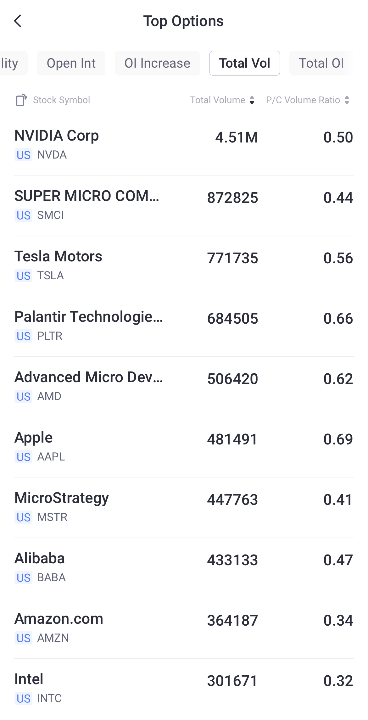 Top 10 Option Volumes