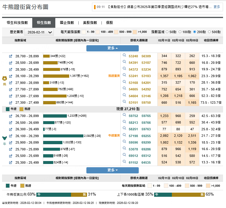 恒指錄得3日連升,上日即市曾再挑戰27300點,淡倉上日錄約2,252萬港元淨流入,恒指牛恒指摩通八九牛S.C /熊恒指摩通八乙熊G.P。