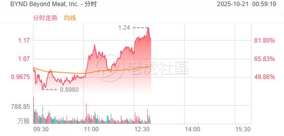 10月20日周一盘中,"人造肉第一股" Beyond Meat, Inc. 股价出现戏剧性反转,大涨93.59%,引发市场广泛关注。这一惊人涨幅与该公司上周的表现形成鲜明对比,上周该股曾遭遇67.88%的暴跌。