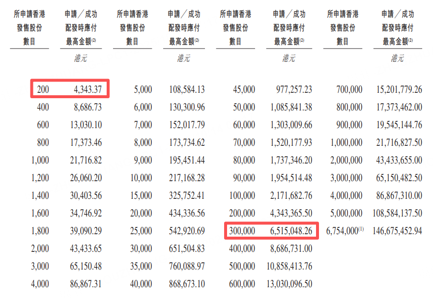 乙组门槛为30万股,申购所需资金约651.51万港元。