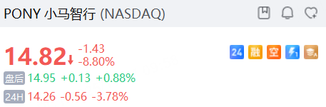 异动 | 智驾概念股下挫,小马智行H股跌超12%,美股夜盘跌超3%