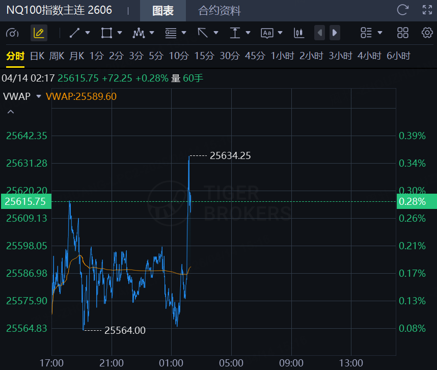 美股三大股指期货短线拉升。道琼斯指数期货涨0.09%,标普500指数期货涨0.14%,纳斯达克100指数期货涨0.28%。
