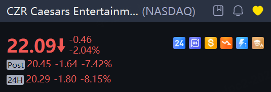Casino operator Caesars Entertainment shares sank 8.2% in overnight trading after it missed third-quarter estimates as visits to Las Vegas declined. Caesars posted a loss of 27 cents per share on revenue of $2.87 billion. Analysts surveyed by LSEG had anticipated the company would lose 5 cents per share on revenue of $2.89 billion.