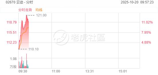 10月20日,港股机器人概念股上涨,次新股云迹涨近12%,三花智控涨超9%,优必选涨超7%, 极智嘉-W涨超5%,越疆涨超3%。