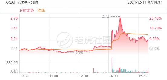 消息传出后,周二美股午盘,卫星通信公司Globalstar股价盘中迅速拉升,涨破2.70美元刷新日高时,日内涨幅超过29%,此后很快回吐多数涨幅,日内涨不足10%,最终收涨8.5%,收创最高纪录。