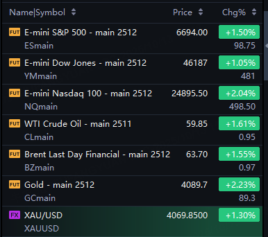 The futures of the three major U.S. stock indexes rose, with the Nasdaq futures up 2%, the Dow Jones futures up 1.05%, and the S&P 500 futures up 1.5%.