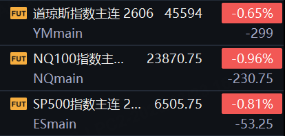 3月23日,美股三大股指期货集体走低,截止发稿,道指期货跌0.65%,纳指期货跌0.96%,标普500指数期货跌0.81%。