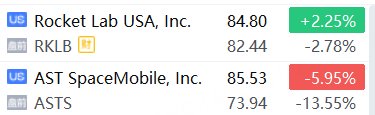 太空概念股盘前走低,AST SpaceMobile跌超13%,Rocket Lab跌近3%;